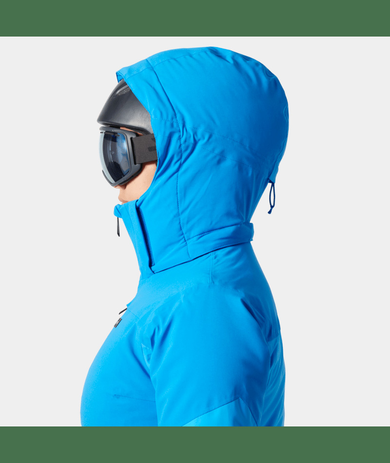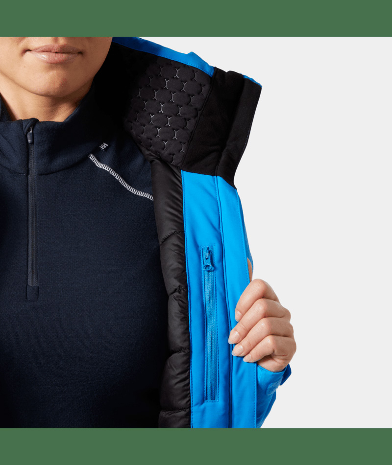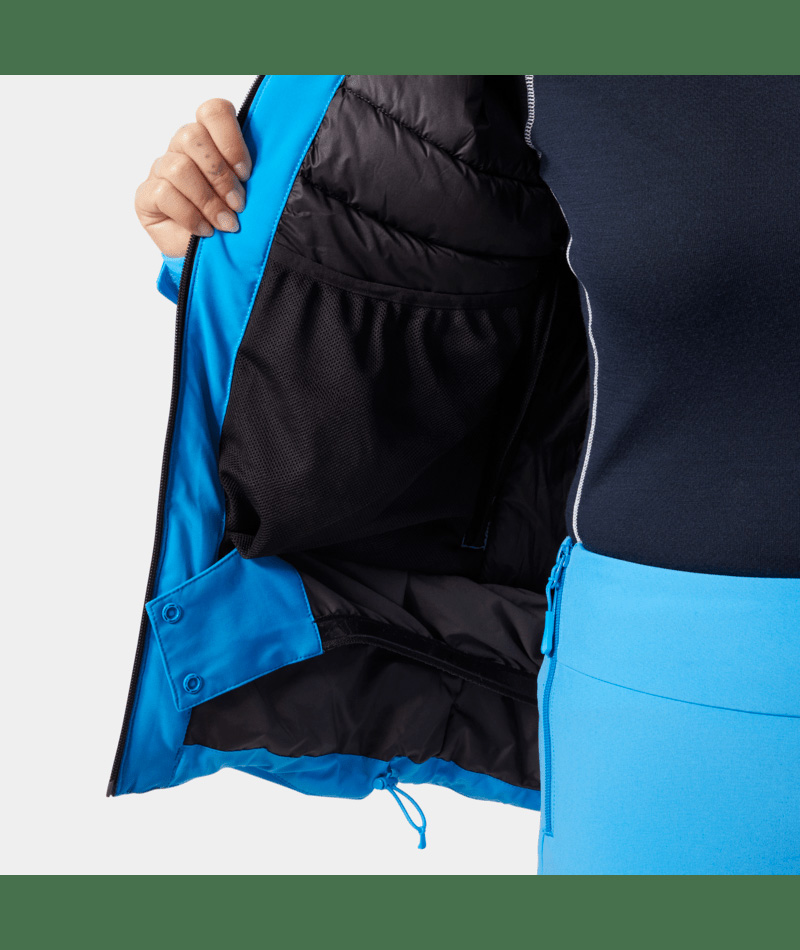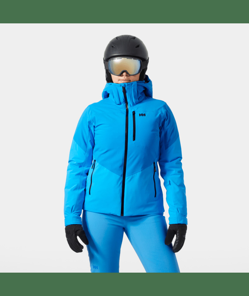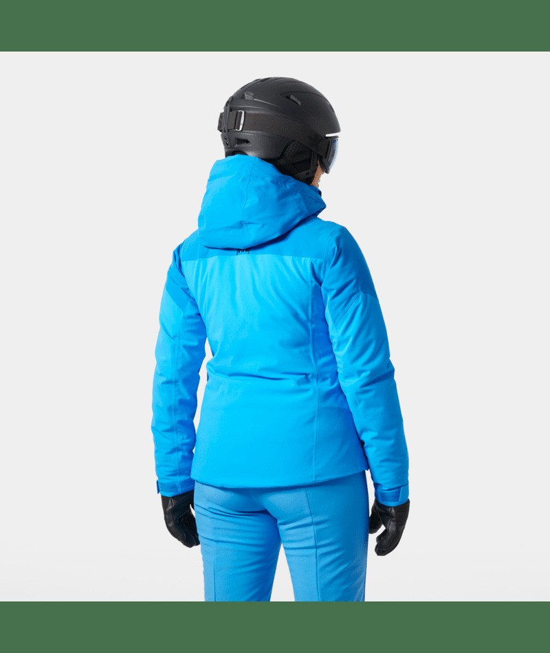 This protective and comfortable performance ski jacket has a sleek, feminine fit plus all the technical ski features you need to excel run after run. Our HELLY TECH® Performance technology is waterproof/breathable and windproof. PrimaLoft® BLACK Eco insulation delivers lightweight warmth. We used a soft baffle construction on the jacket interior to increase warmth, while mesh ventilation enables you to release heat when you’re working hard. With 4-way stretch fabric, you get maximum freedom of movement and an adjustable powderskirt adds to the versatility. Small details with big impact include a RECCO® transponder, a ski-pass pocket, a goggle pocket, a detachable hood and wrist gaiters.
