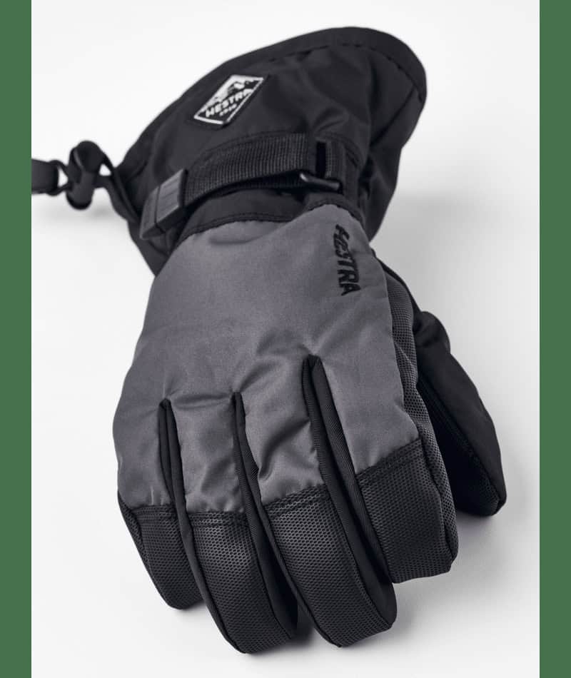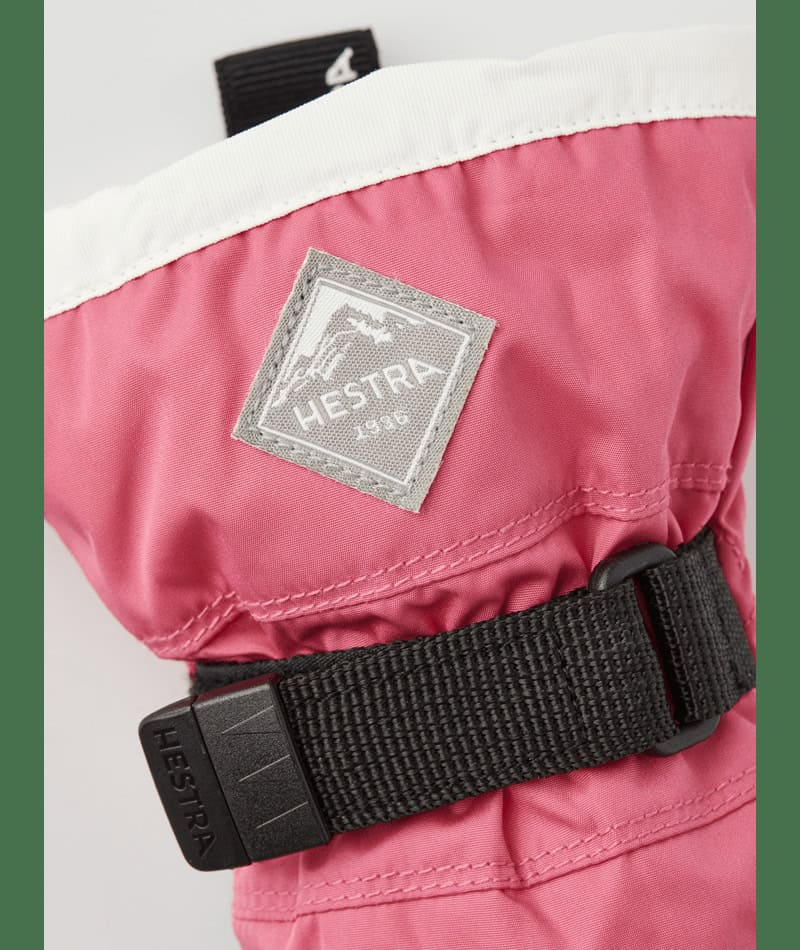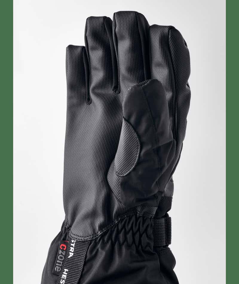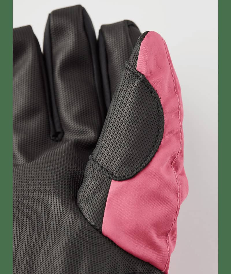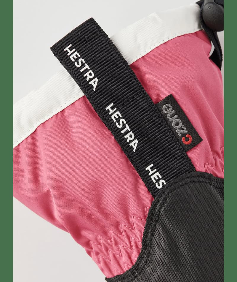 A warm, comfortable kids’ glove for skiing, play and outdoor activities in cold winter weather. One of Hestra’s most popular junior gloves, sewn in hardwearing polyester with a waterproof, breathable CZone membrane and a longer cuff to keep the snow out. Fingertips and palm are reinforced with PU-coated synthetic fabric for extra strength and grip on poles, sledges and other winter gear. The liner is made of polyester fleece with warm synthetic insulation. Also available as a mitten and in a three-finger version.