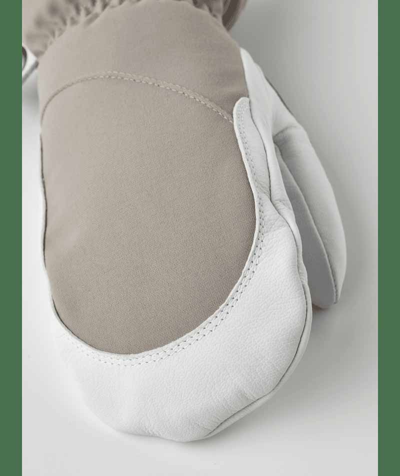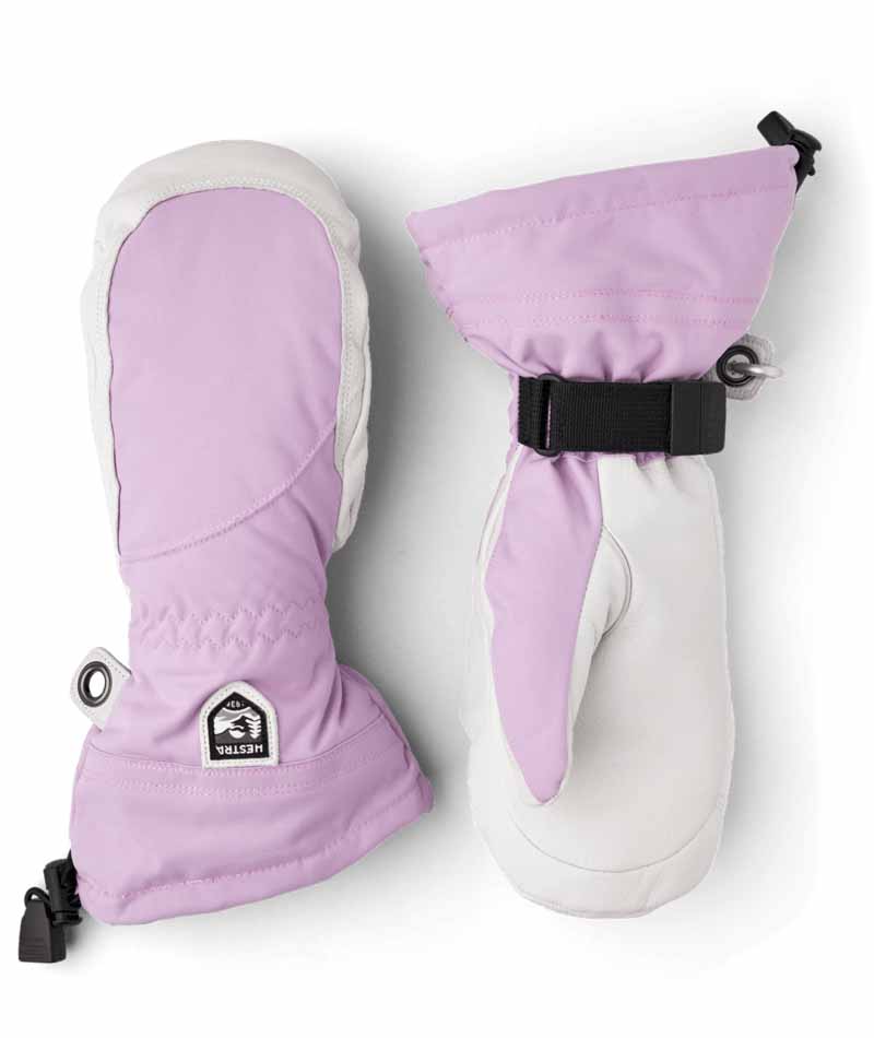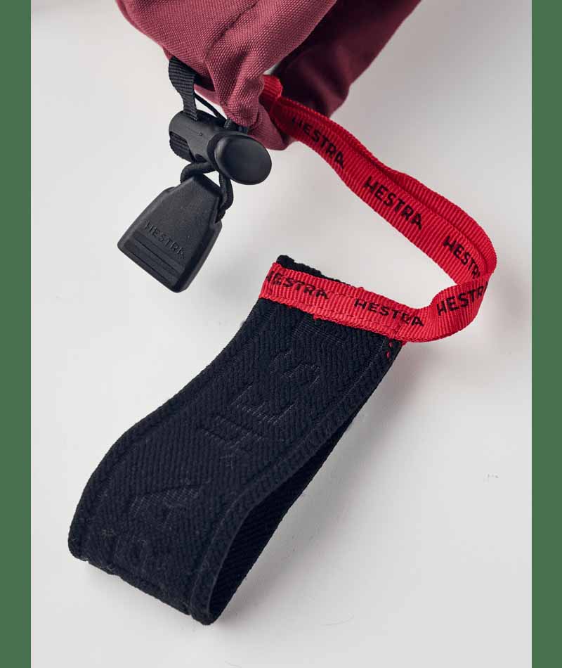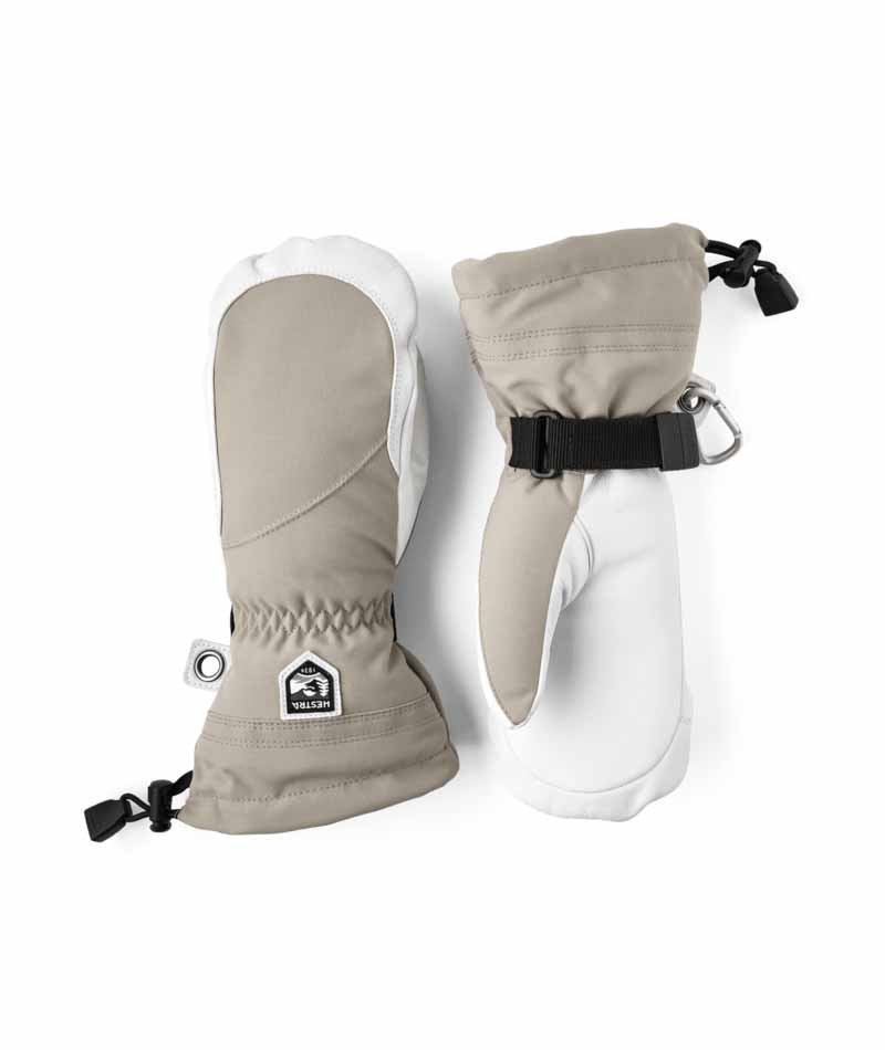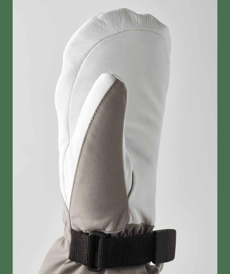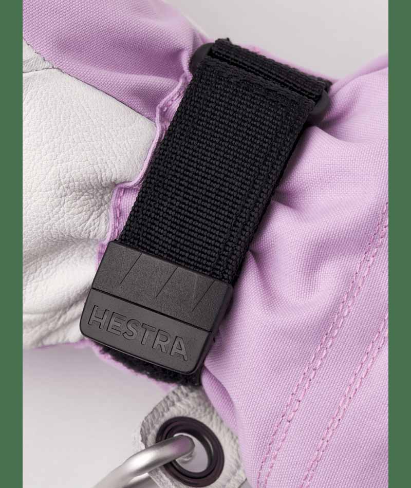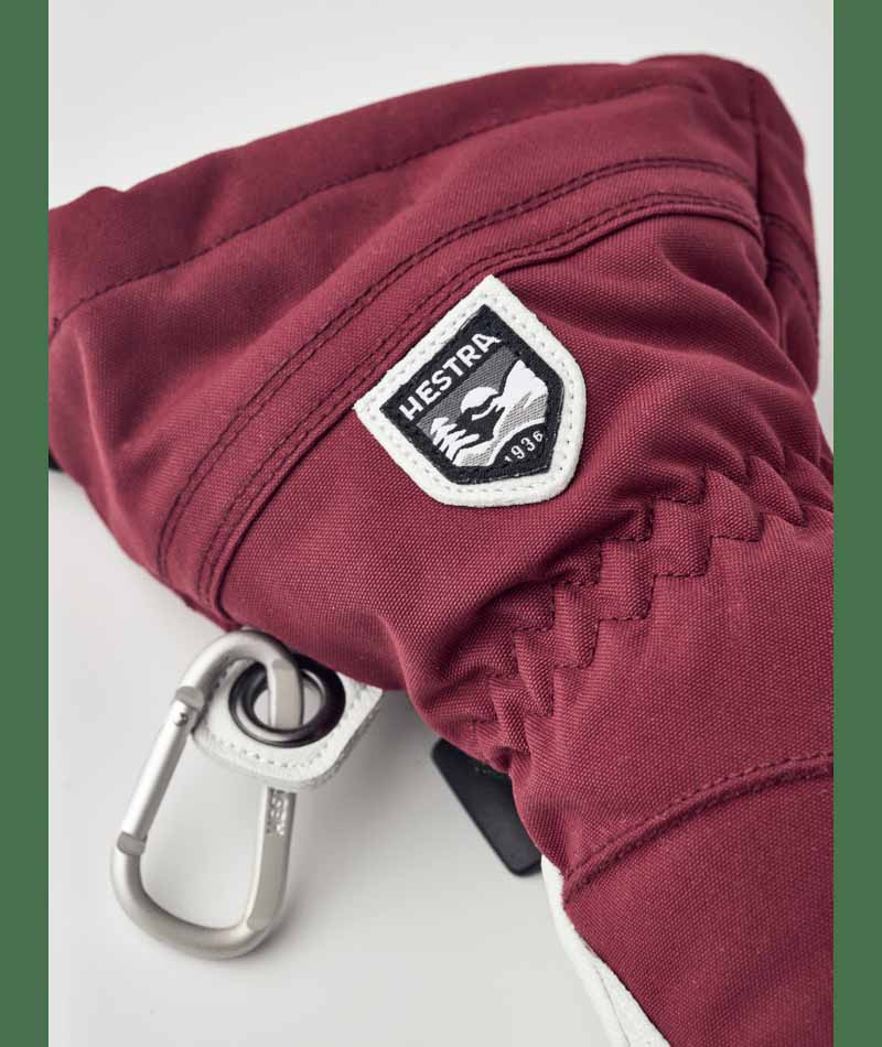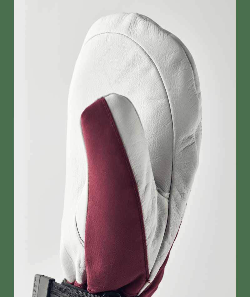 Hestra’s Army Leather Heli Ski was originally created for ski guides in western Canada who needed a reliable and warm ski glove for long, cold days in the snow. This women’s mitten has a narrower cut to fit women’s narrower hands. Like all mitten versions, it provides plenty of space for the fingers, making it warmer than the equivalent glove. The outer glove is sewn in a hardwearing, weather-resistant combination of goatskin leather and 3-layer polyamide fabric. A range of smart functions come in handy when you can’t head indoors to warm up that often. For example, the liner is easy to remove and dry, or replace with a thinner inner glove when you’re being more active and hiking uphill. In powder snow, the long cuff with snowlock and wrist adjustment keep the snow on the outside and the warmth on the inside. A wrist strap reduces the risk of dropping a glove if you take it off to adjust your equipment or use your phone. And the included carabiner means you can hang the glove up with its opening facing downwards – practical while you’re wearing just a thinner liner and want to avoid your gloves filling up with snow. A durable, flexible companion for skiers that spend a lot of time outdoors and who often find themselves far from the ski resort and its comforts. Also available in 3-finger and 5-finger models.
