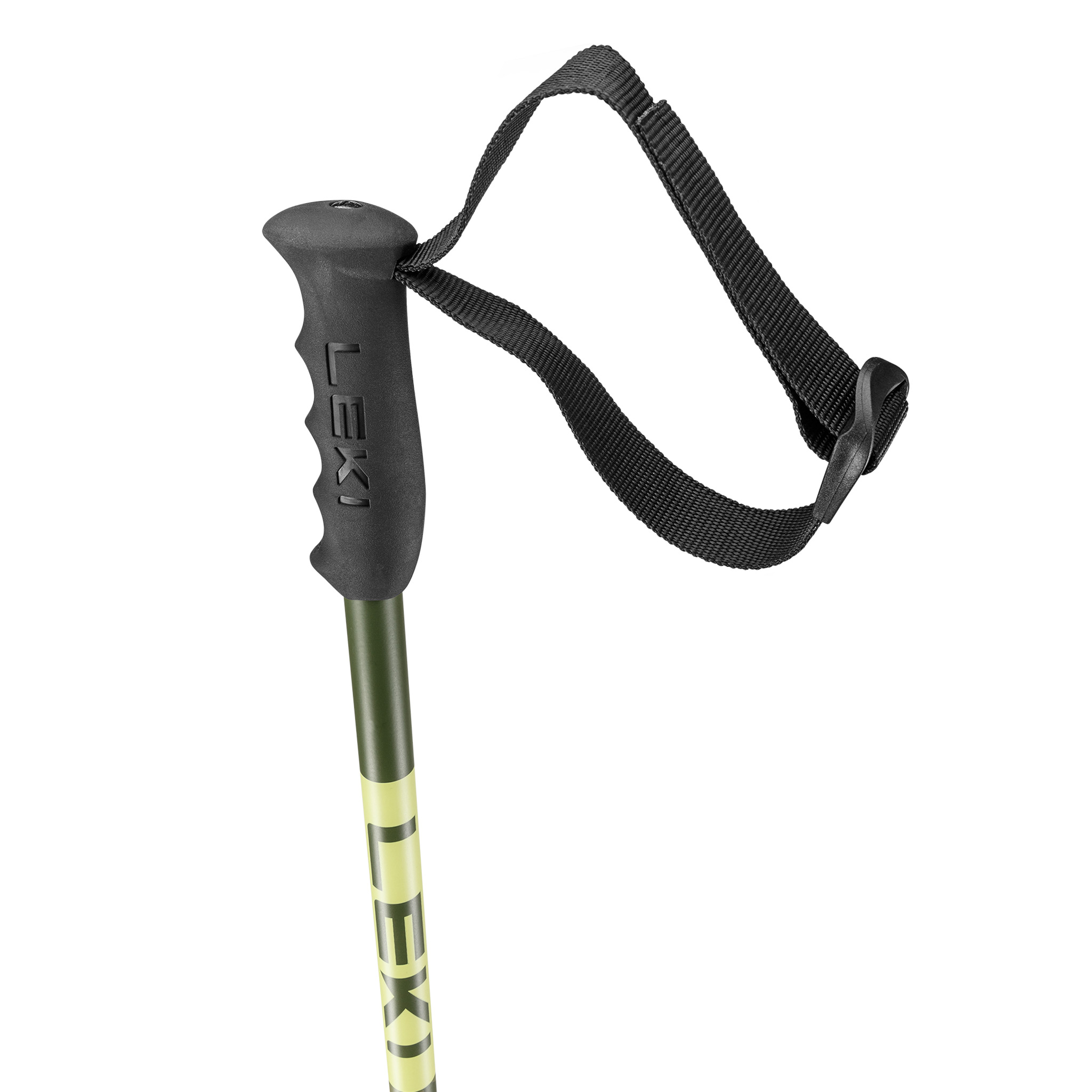 The LEKI SWTCH is a lightweight Aluminum pole featuring a comfortable and tacky Downhill Racing grip and an adjustable traditional loop strap. These poles are designed to be budget-friendly, enabling you to maximize your gear investment. The performance basket and steel tip ensure that the SWTCH performs well in various conditions. It is available in four attractive color options, including bold berry, lemon, and a sleek black-on-black design.
