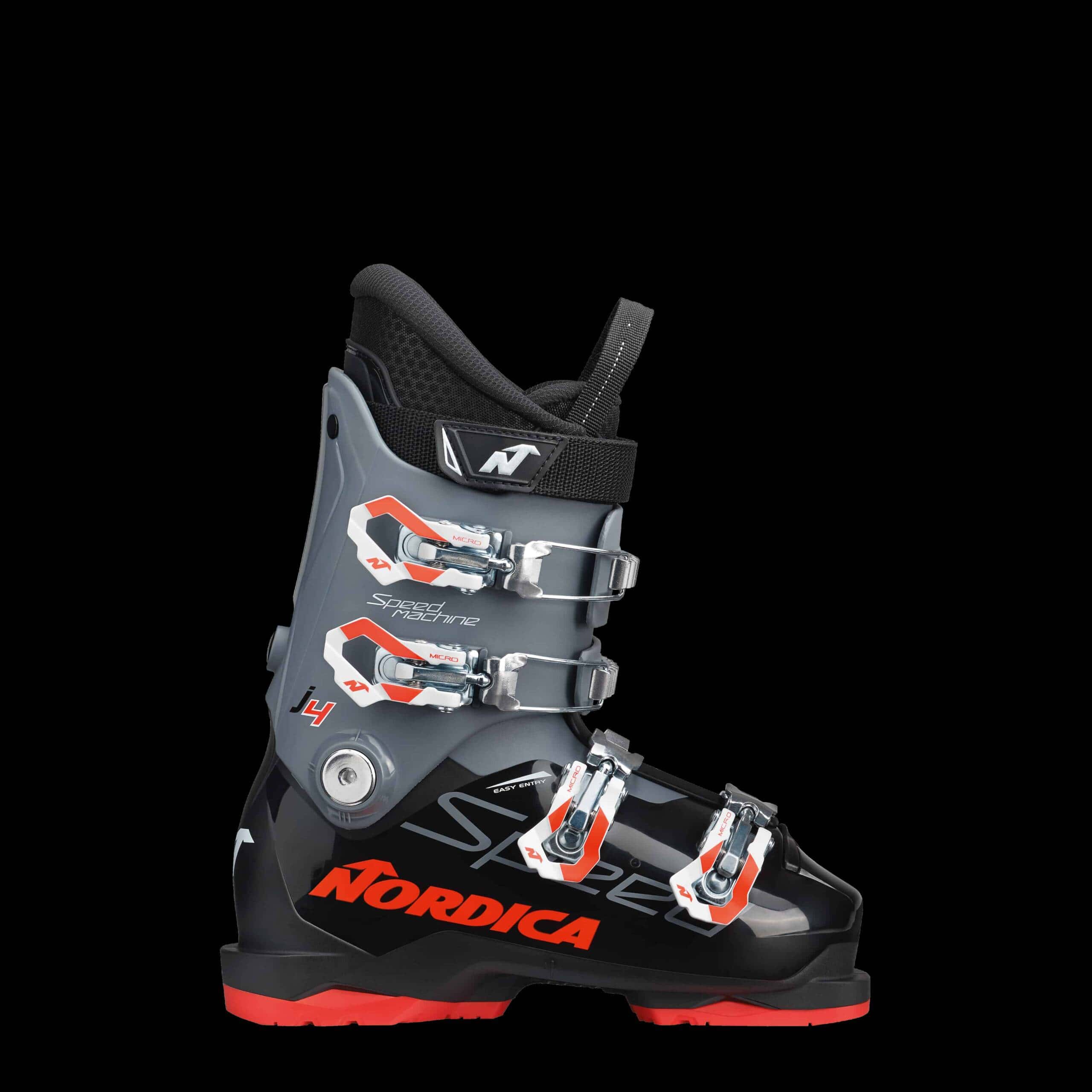 Nordica’s Speedmachine J4 helps young skiers discover their potential—and a love for skiing. Thanks to an entirely new design, it reduces weight while offering even greater control. To boost confidence and make turning easier, the Speedmachine J4 positions young skiers in a neutral stance that enhances stability. A fourth buckle provides additional support while ensuring the boot is easy to put on and take off. And to maximize warmth and comfort, it features a plush liner. Nordica’s Speedmachine J4 accelerates progression while helping young skiers have an incredible time on the slopes.