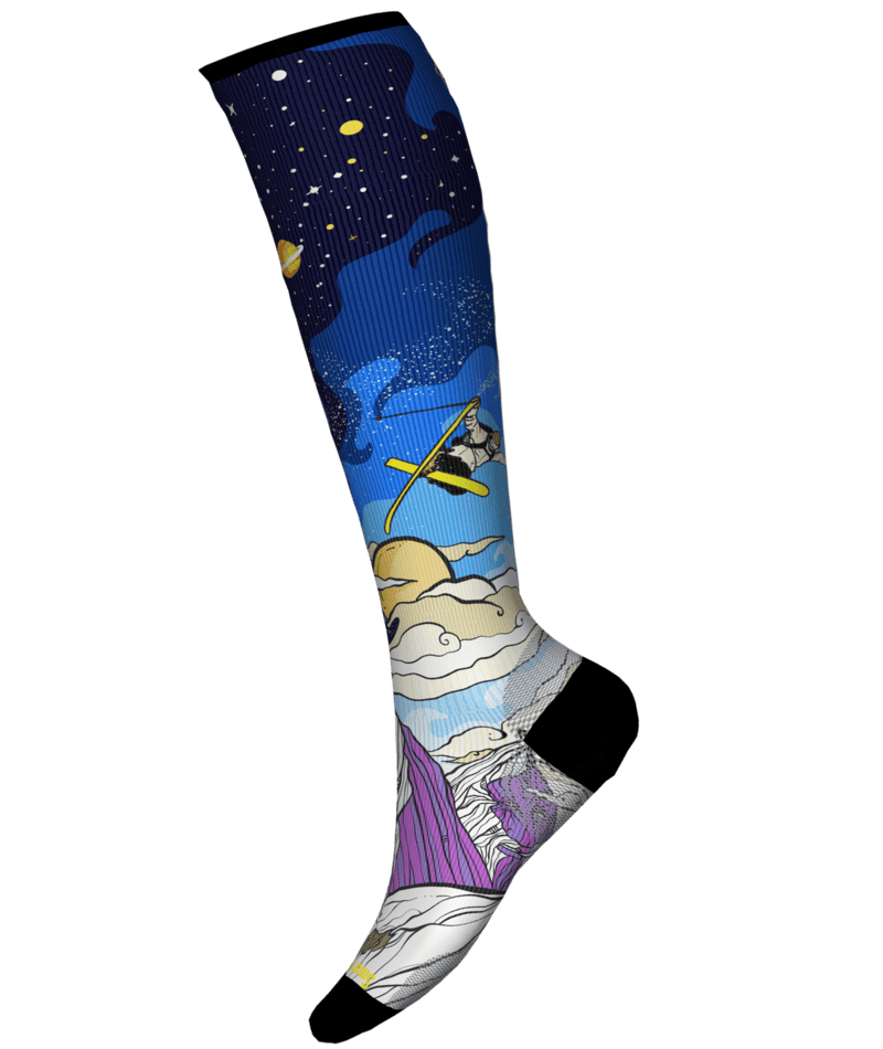You know it’s gonna be a good ski day when you’ve got Merino socks on your feet. With a custom design by Chris Benchetler, our Women’s Ski Zero Cushion Galactic Ski Print Over the Calf Socks deliver everything you need to stay on the slopes longer. The women’s specific fit with a narrower heel shape is designed for secure all day comfort. These socks also feature our top sock technologies, like Indestructawoolâ„¢ designed for added durability and a 4 Degreeâ„¢ elite fit system for a dialed-in fit, these socks deliver comfort and performance that never quits.