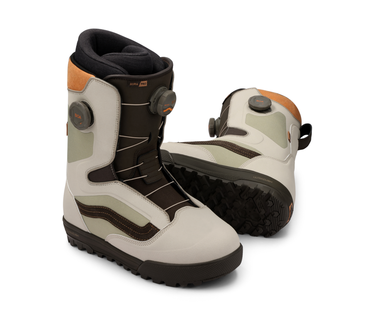 Featuring comfort, control, and style that only Vans can offer, the Aura Pro delivers on its versatile, hardworking reputation as the boot built to perform in all environments. A dual-zone BOA® Fit System featuring Vans Custom Focus provides unlimited on-the-fly micro-adjustability backed by the customizable comfort and heel hold of the Custom Slide Guide. Add in the V2 UltraCush™ Smartwool® liner andV2 Waffle Pro outsole, and the Aura Pro will exceed your expectations for comfort and performance.